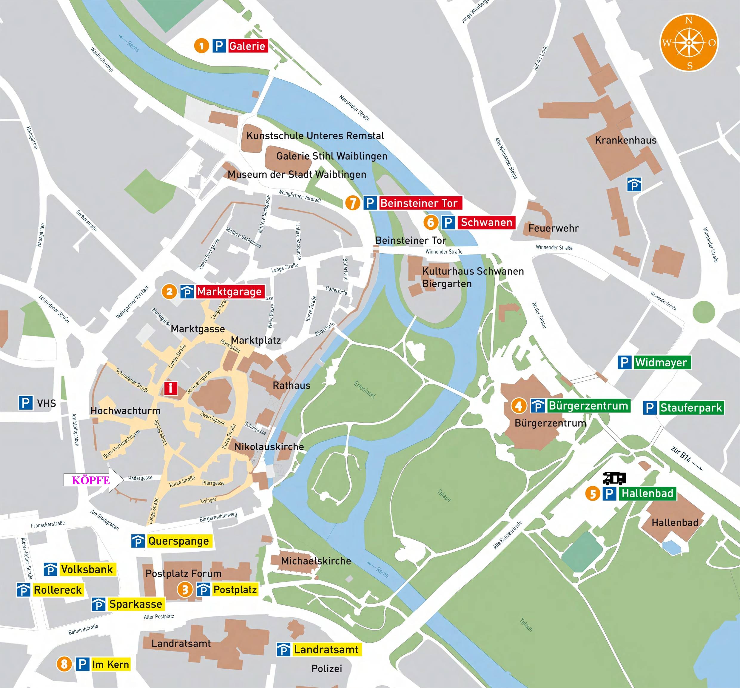 Parken ist in Waiblingen sehr günstig. Die erste Stunde auf den Parkplätzen kostet nichts. In den Garagen sind die ersten 30 Minuten ebenfalls kostenfrei.